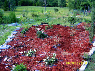 Blue girl, she is struggling....if the roses can just hold on, they will be fine. Working hard to finish the bed.